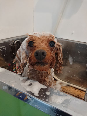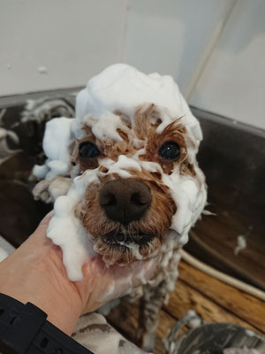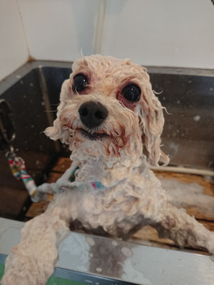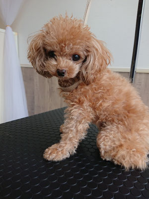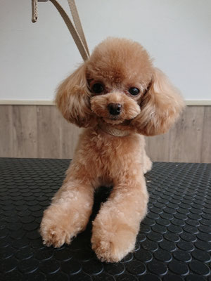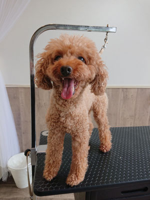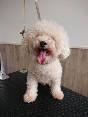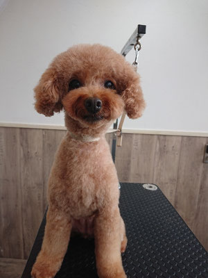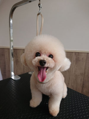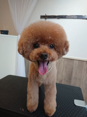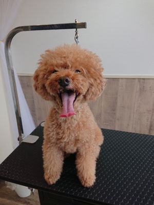 ポムくんの気も緒よさそうなお顔にトリマーさんも癒されました♡