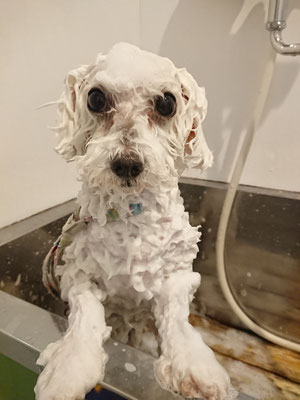 ブロー中はドライヤーの音に負けないように大きな声でシルクくんの名前をたくさん呼びました(^^)