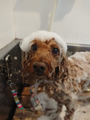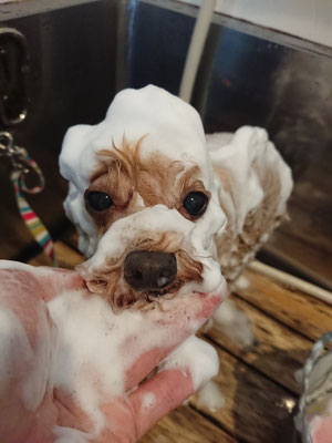 寂しがりやのからあげくんだけど、今日もトリミング中にいっぱい名前を呼んでもらっていっぱい褒められたらご機嫌回復していました♡