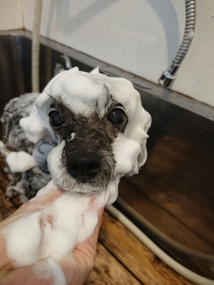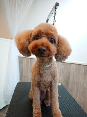 最初のトリミングに比べて慣れてきた様子のててまるくん♡
