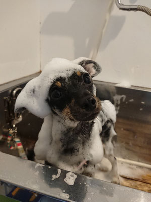 前回までは遊びたいばかりでグルーミング中はずっとわちゃわちゃしていたけど、今日はずいぶん慣れた感じでおとなしくリラックスしている時間が長くなっていました!!