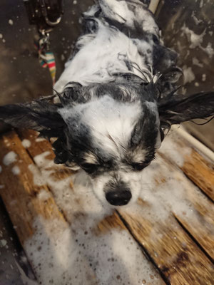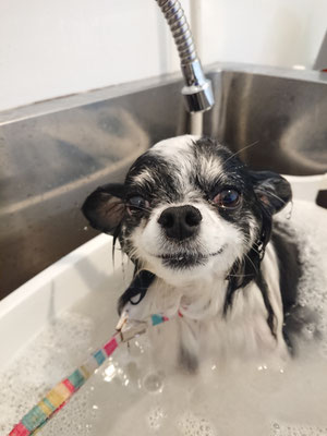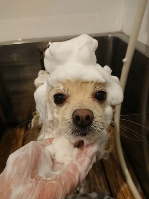 前回のシルク泡パックが気に入って今日もシルク泡パックをしたレオくん♡