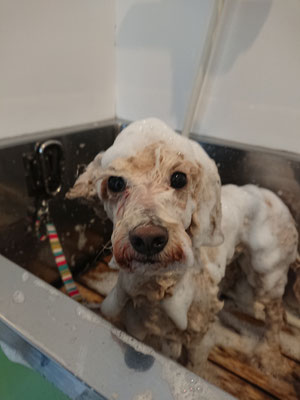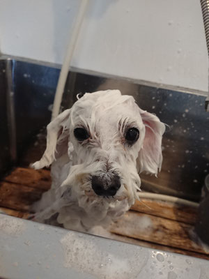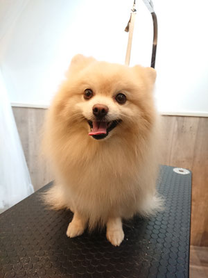 今日もトリマーさんを見つける目はハート♡のポンタくん♡