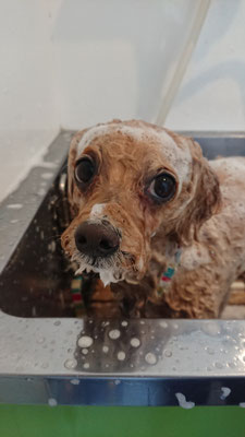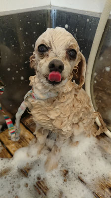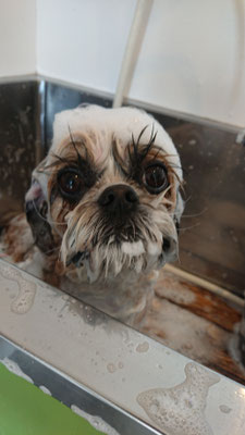 ノアちゃんはトリミング中終始ご機嫌でした♡触ってもらうのが大好きだからうれしかったね~♡