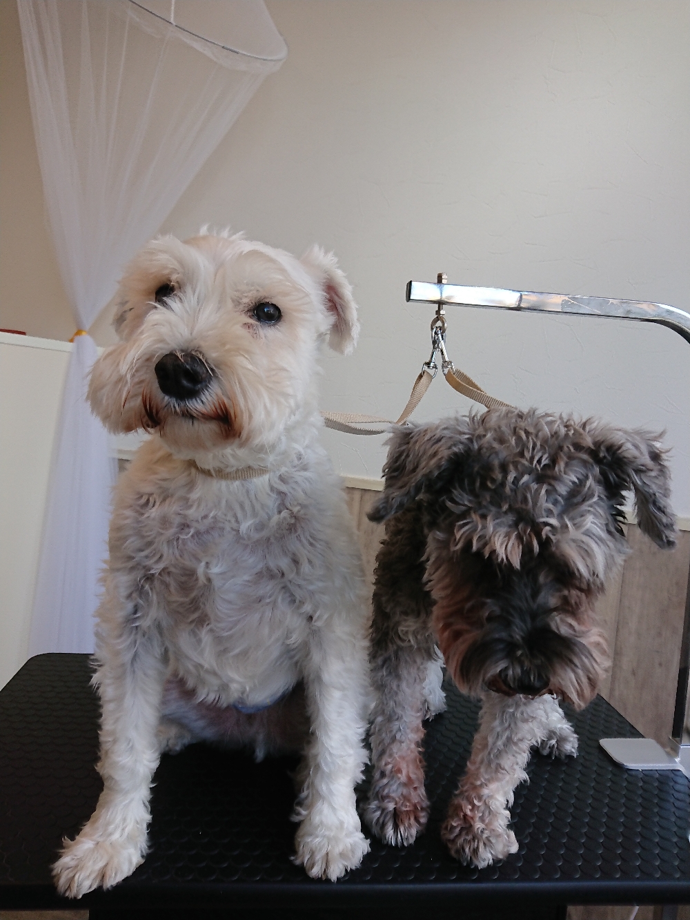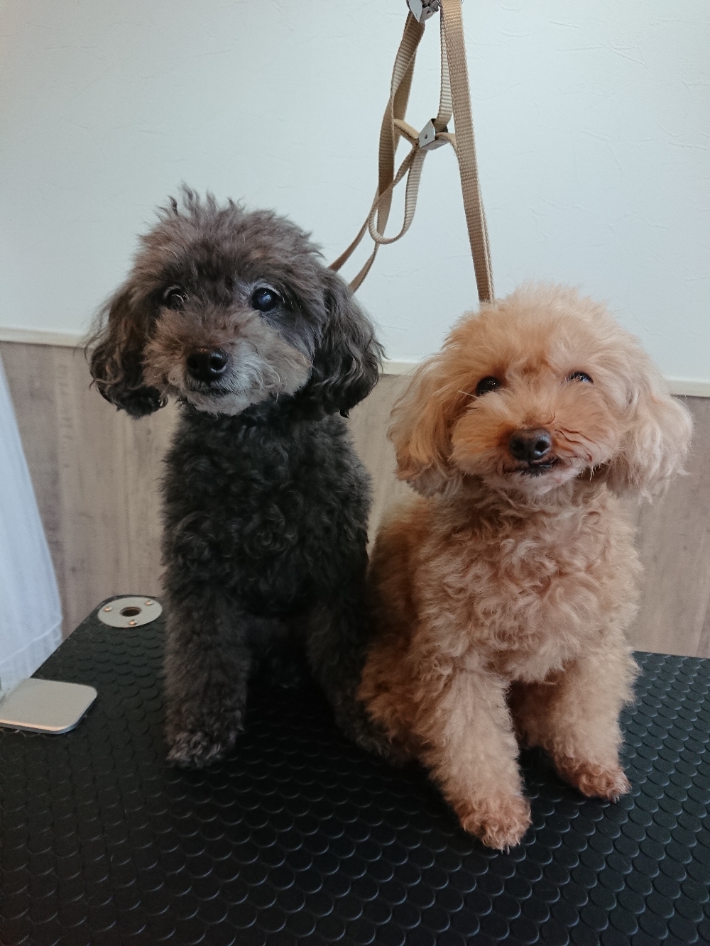 ふたりとも肛門腺がたくさんたまってて絞ったら大噴射!!(笑) お風呂の壁にもトリマーさんの服にも飛び散りました(笑) お尻がすっきりしてよかったね(^^)