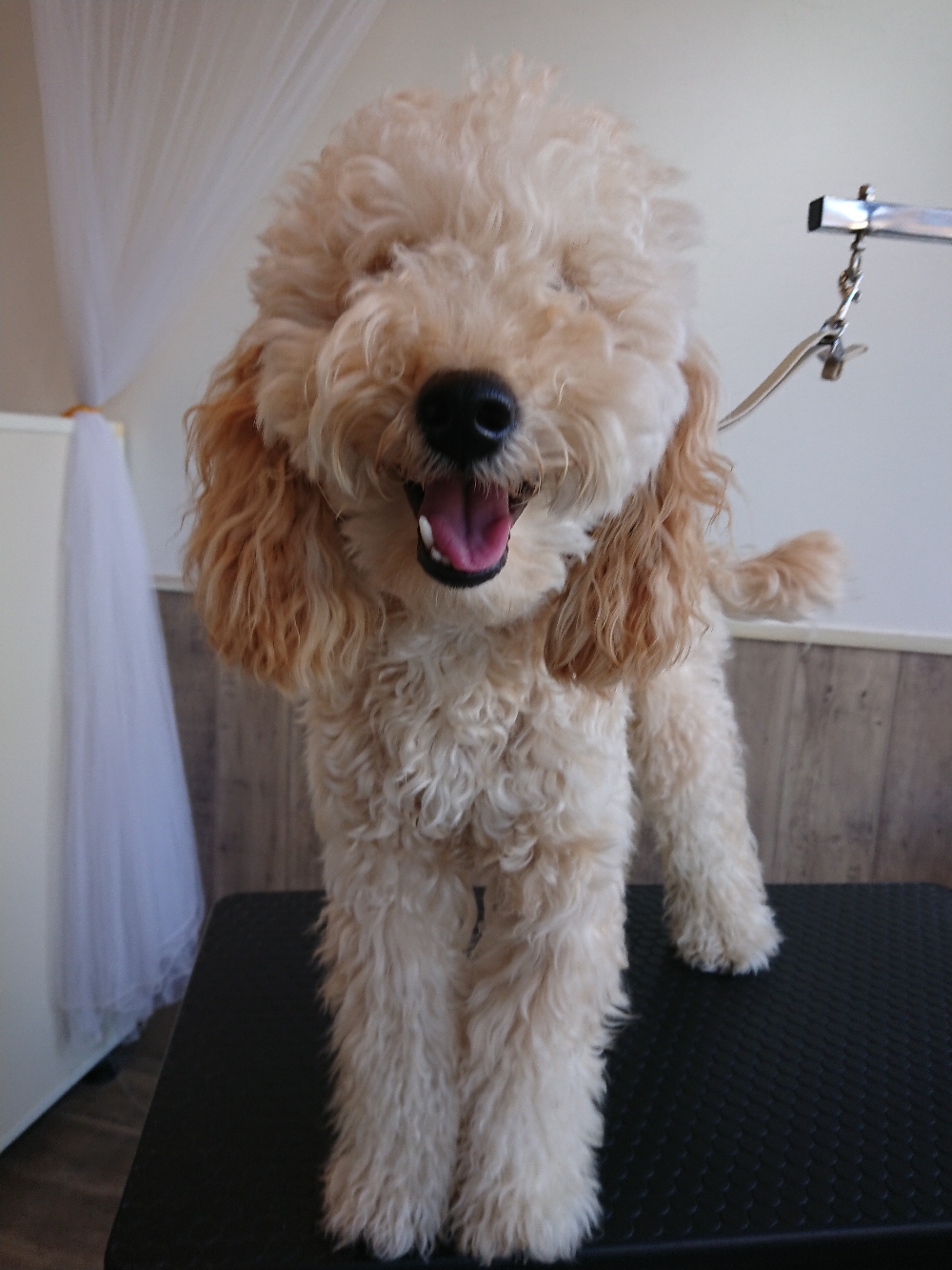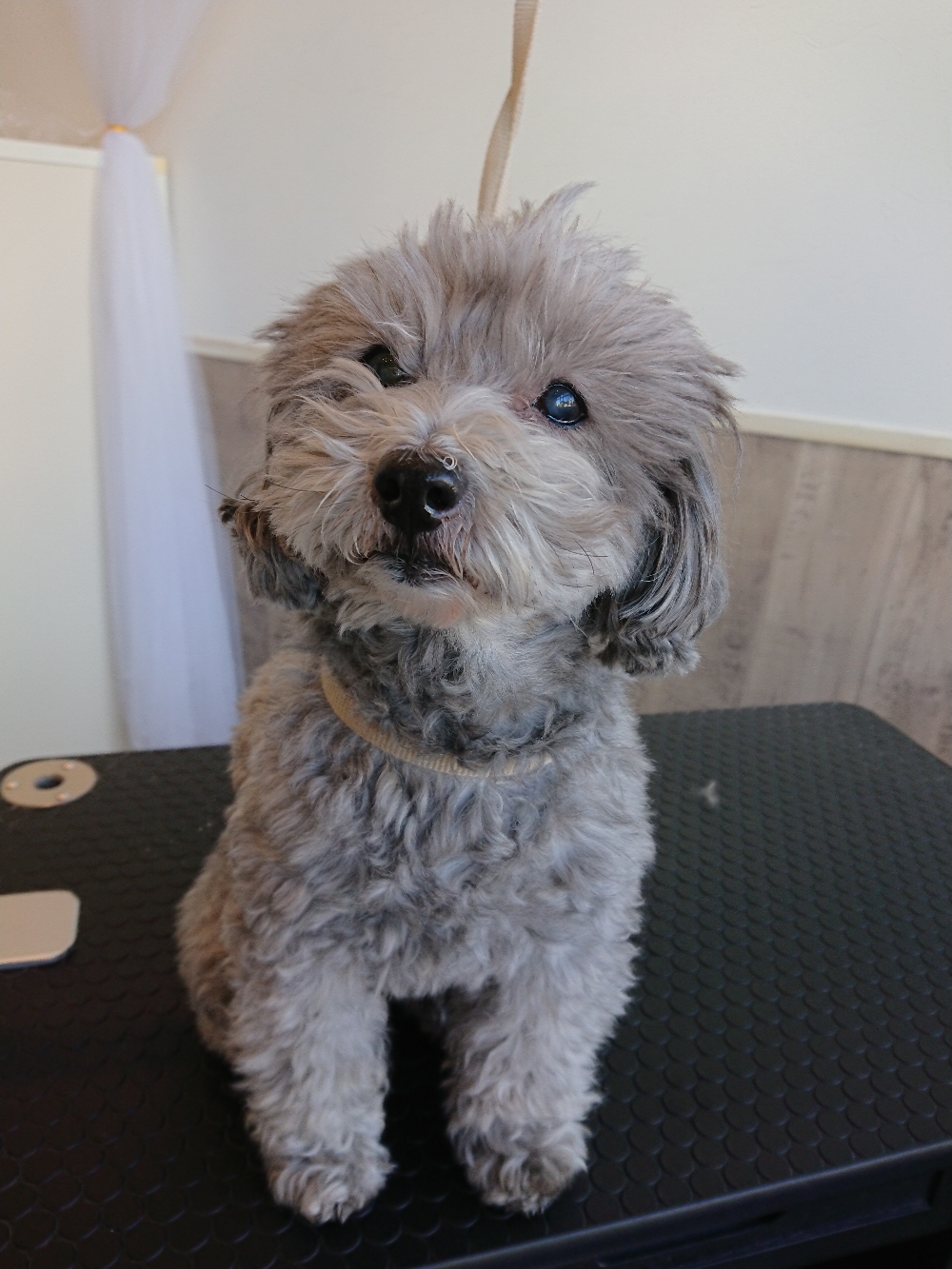すごく久しぶりのトリミングだったけどお家のブラッシングがスーパー上手にできていたので毛玉ももつれも一つもありませんでした!! すご~い!! シルク泡パックでくるくるだった毛もサラッサラになってかわいくなったね♡