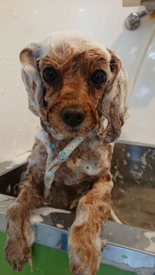 まだまだ子犬ちゃんなのに成犬みたいに落ち着いてて歯磨きもトリミングもすご~くおりこうさんでした!!